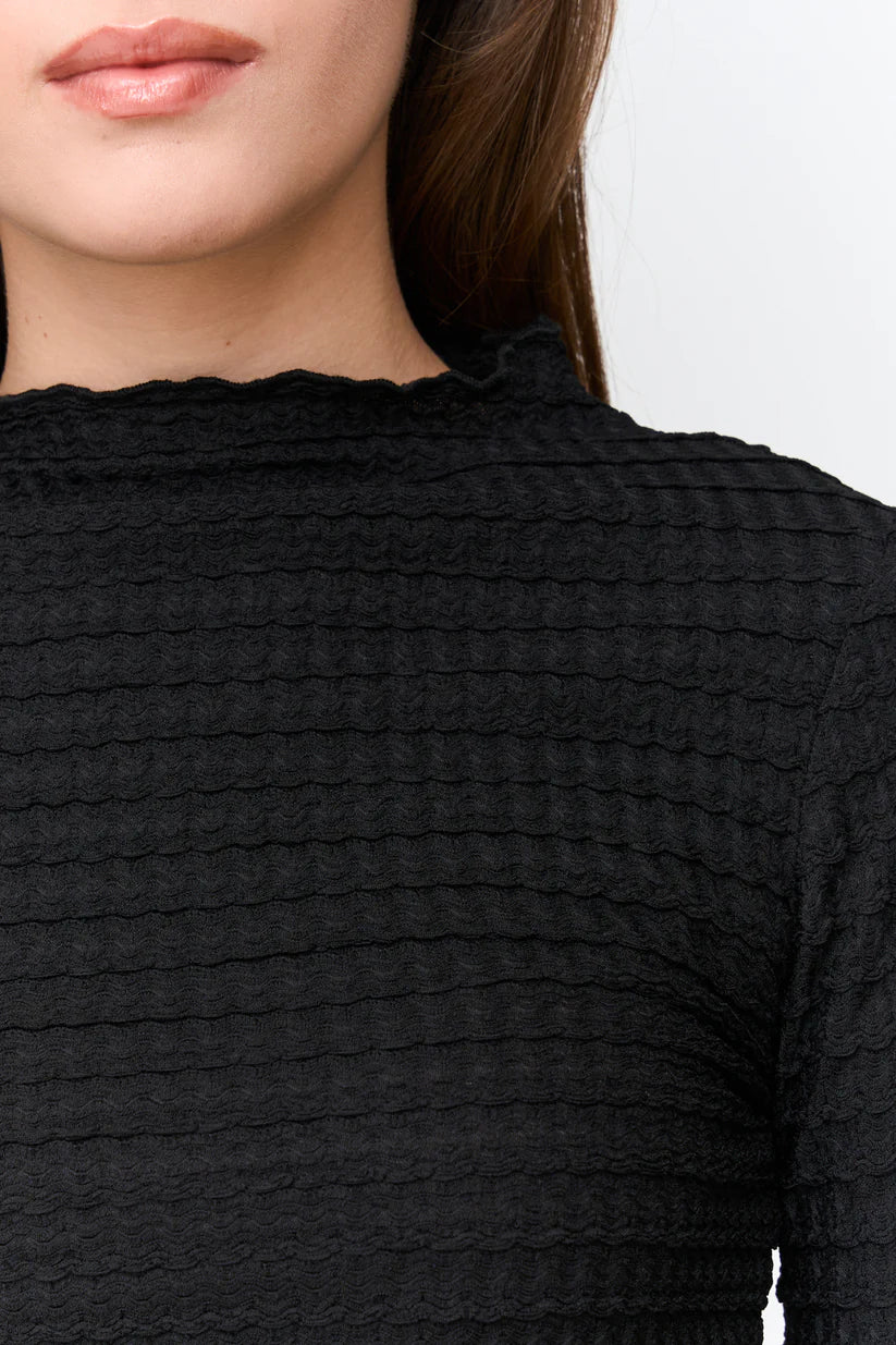 Black long-sleeved shirt made of structured fabric