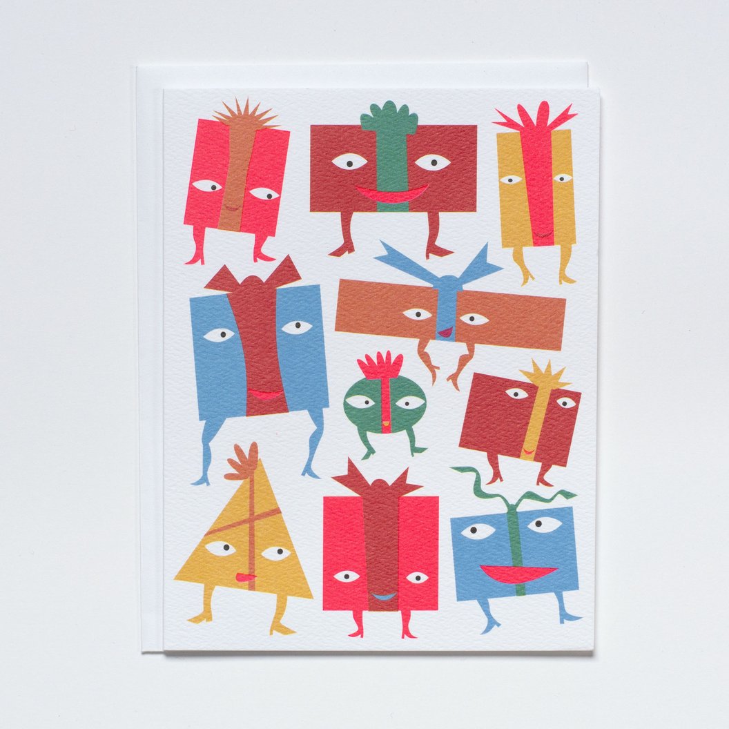 Our ten-year old shrieked when she saw these wacky smiling presents two stepping their way to the party. Made for birthdays but would work equally well for Christmas too.