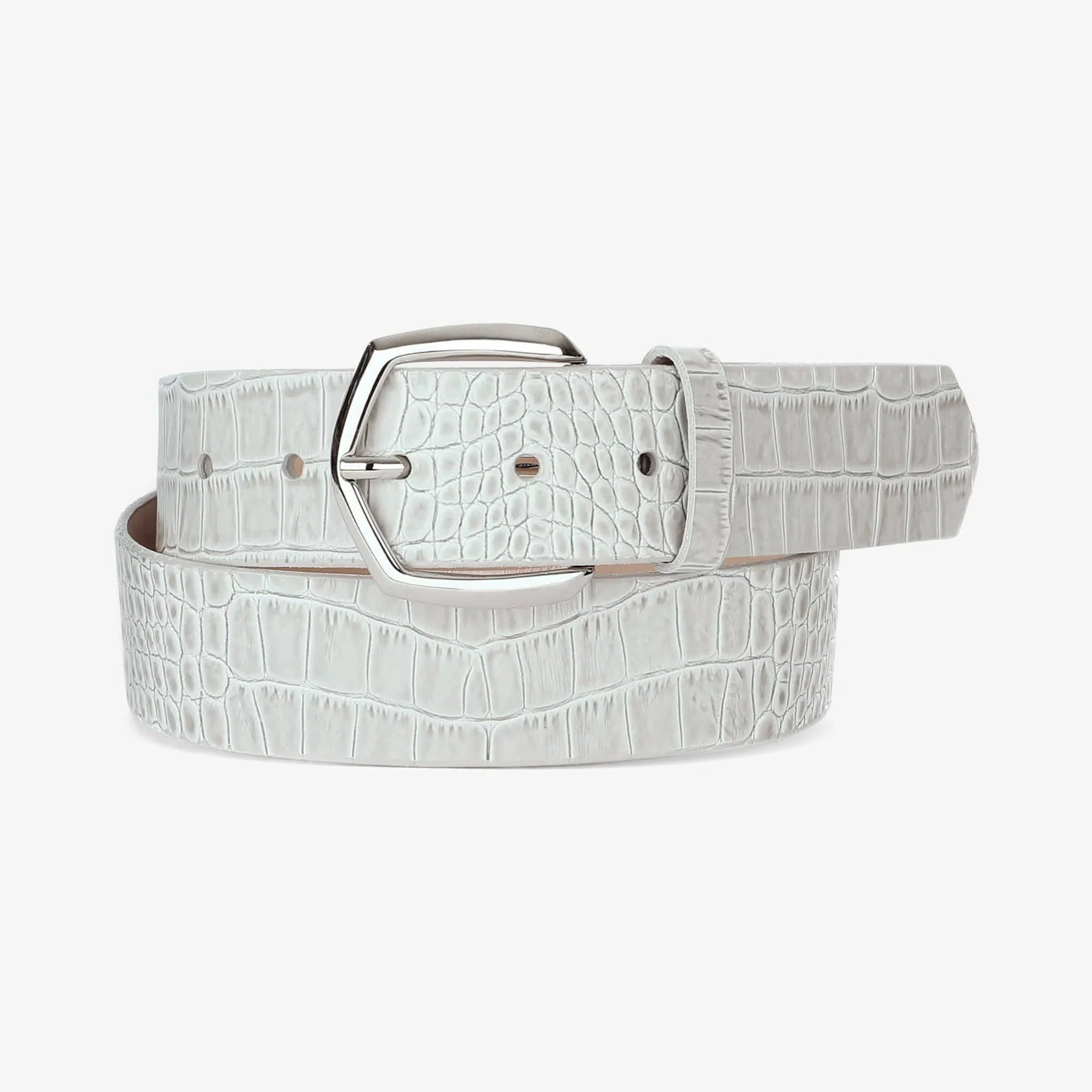 Our best selling Hima belt features a high polished buckle paired with our luxe croc-embossed Italian Barcelona leather. Hima is a chic accent piece that will take your looks to the next level.