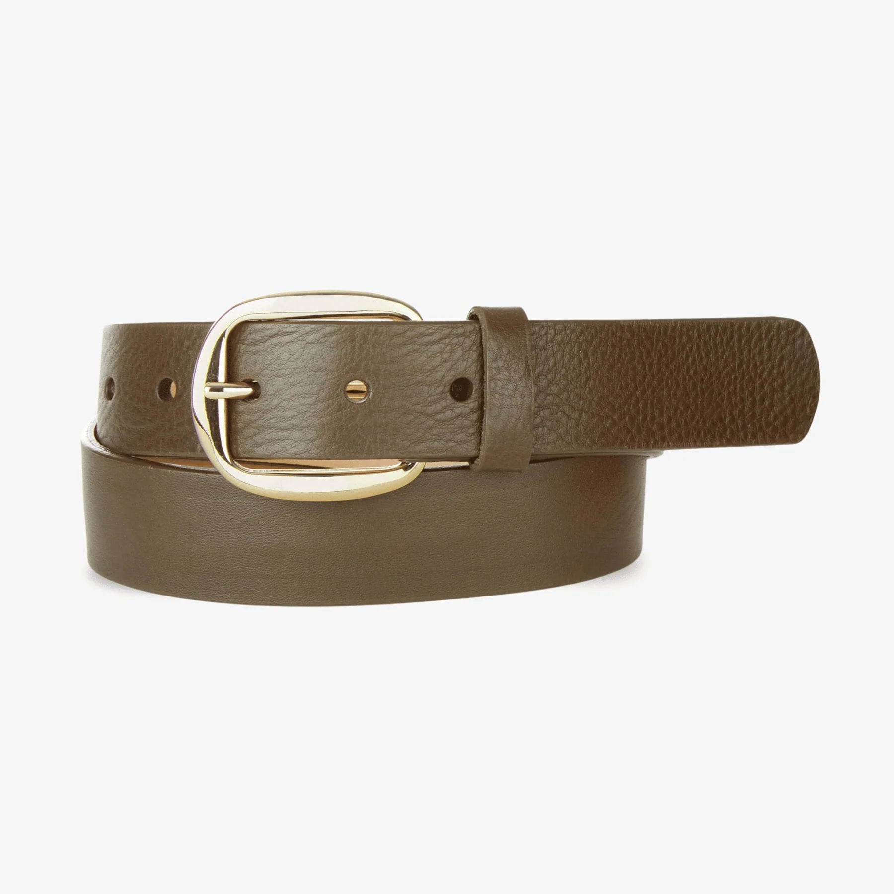 Olea features a polished, rounded buckle on our premium Vachetta leather. Elevate your look with this elegant wardrobe accessory.