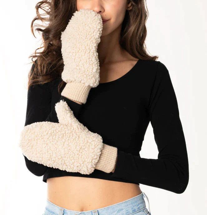 Layer up with the new teddy mittens! They are a shearling style with a super soft and cozy feel.