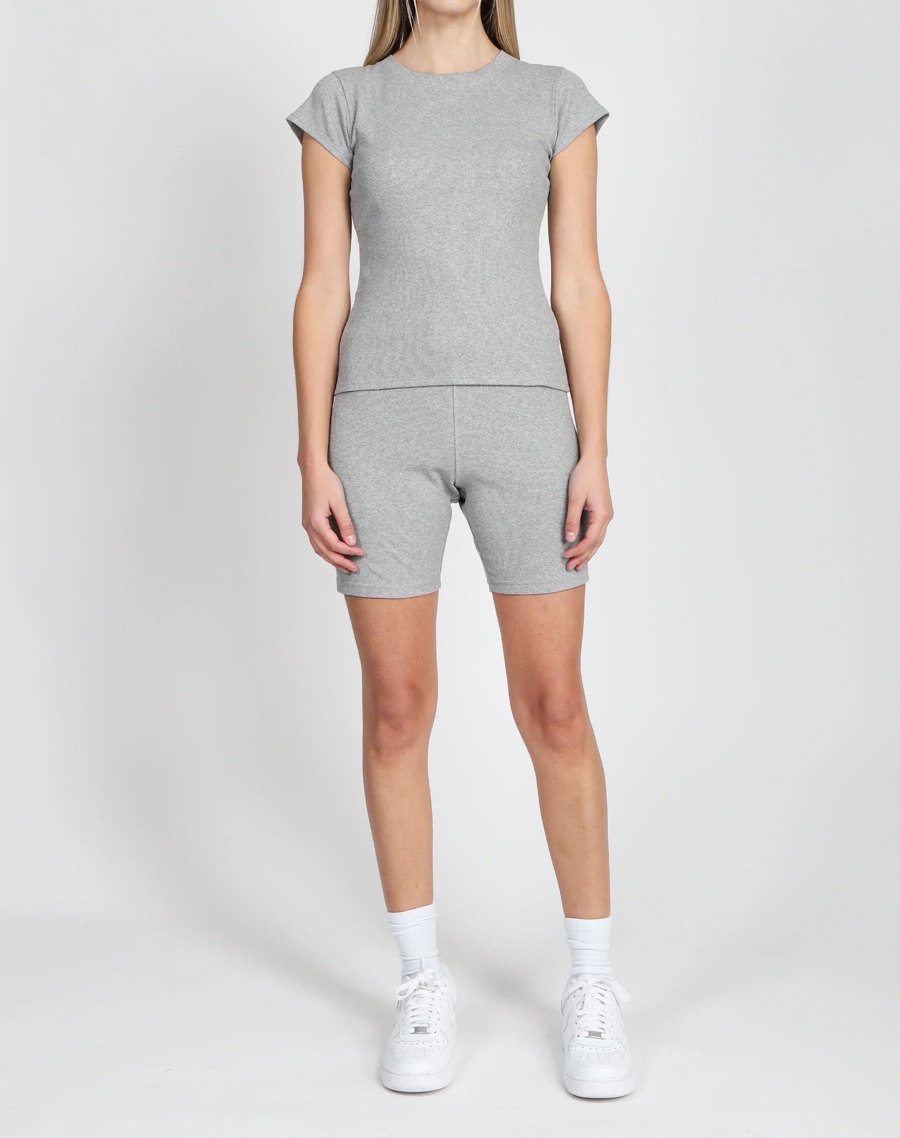 Brunette the Label The Ribbed Fitted Tee | Classic Grey