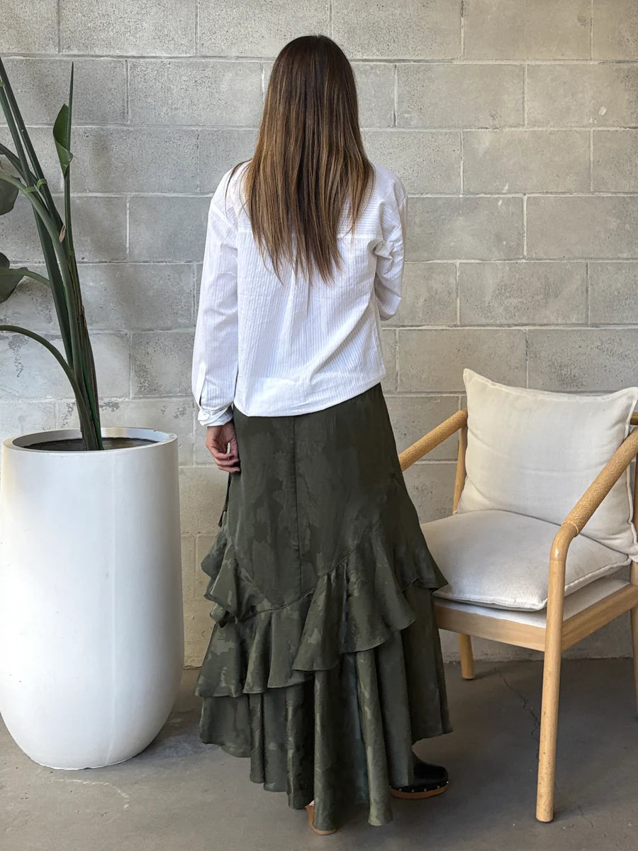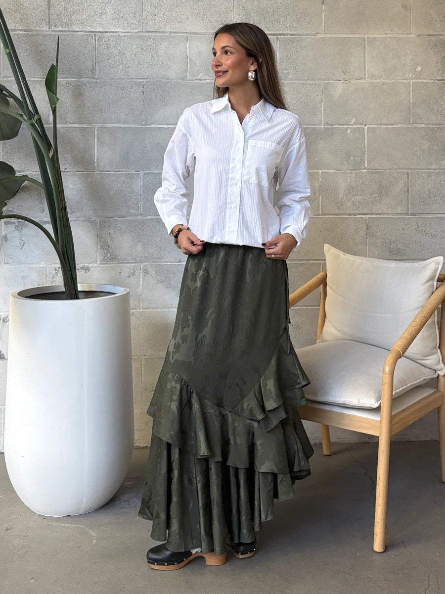 The Dex Textured Button Front Shirt features a crisp white woven fabric that pairs effortlessly with denim for a polished yet relaxed look. Designed with a refined texture and classic button front, this blouse brings sophistication to your everyday wardrobe, ideal for dressing up your favorite jeans with understated elegance.