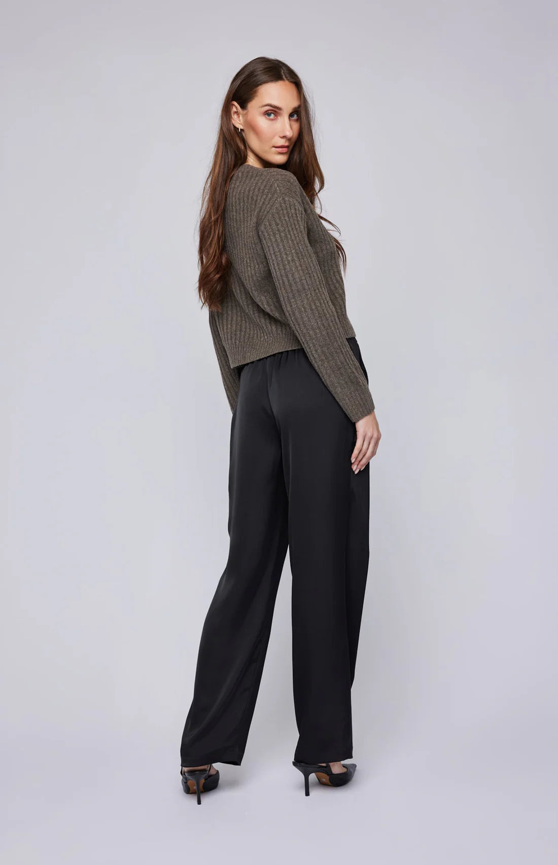 The Millicent pant is made of a luxe satin fabric. Features include an elasticated waistband and slash pockets. Complete the look with the Alessia tank, Winslow button down shirt or the Natalie blazer.