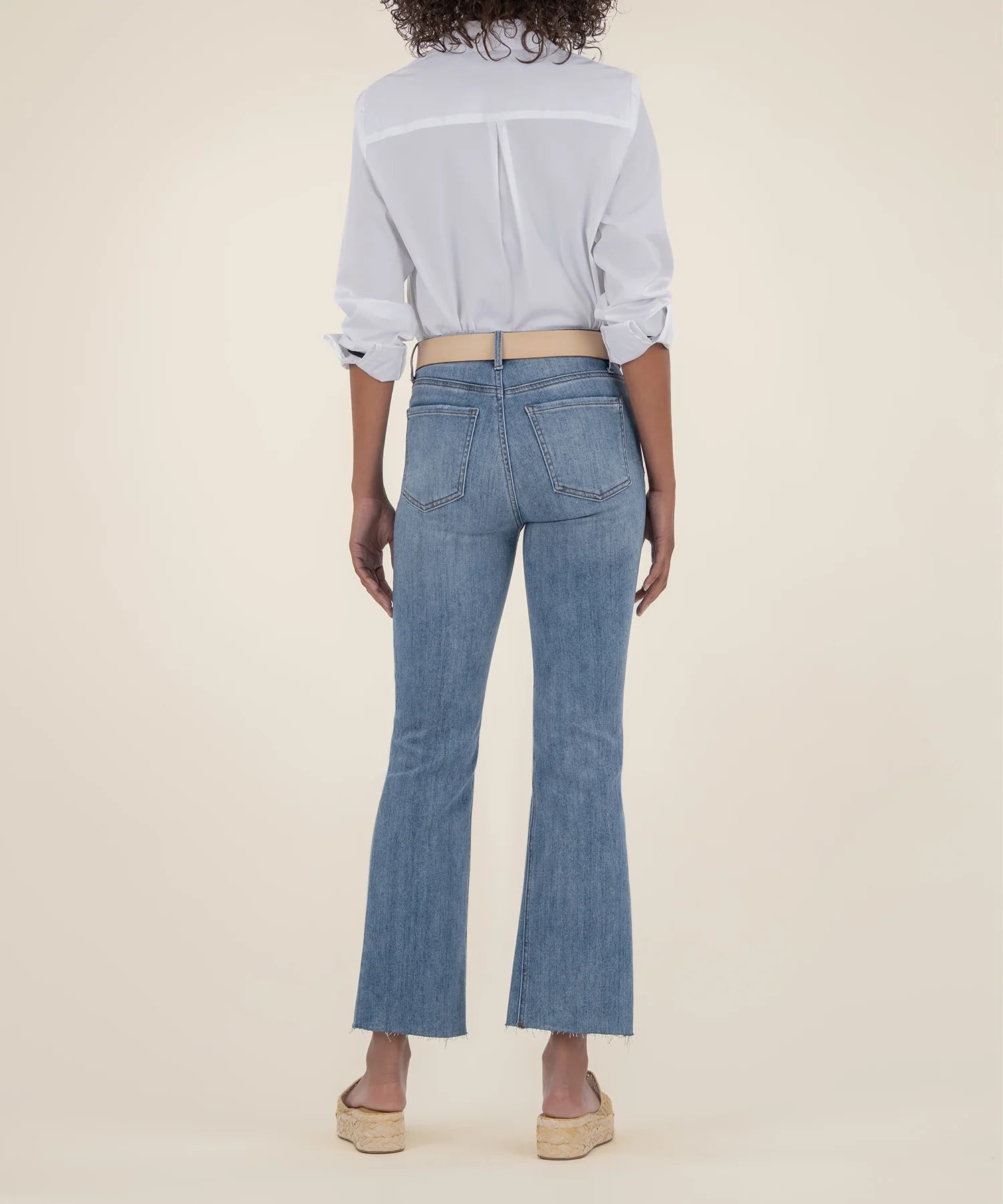 - Flatter your figure with these high rise Fab Ab ankle flare Jeans in a versatile light wash. Designed with our tummy-smoothing Fab Ab technology, they feature a trendy Nest leg, subtle raw hem, and stylish ankle flare for a modern, flattering fit. Perfect for effortless everyday style.
