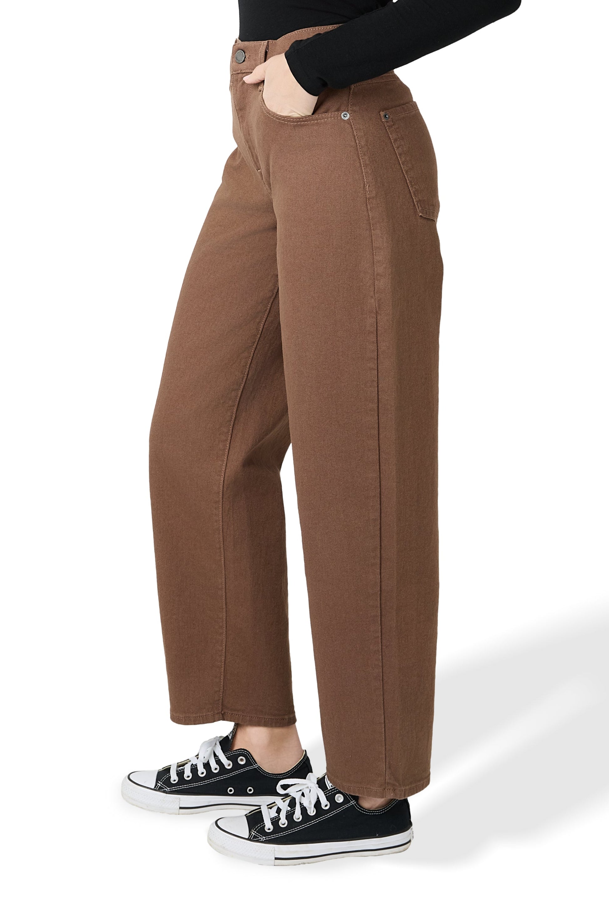 A high-rise barrel jean with a full leg that tapers to a cropped hem. Relaxed through the hip with a soft twist seam—easy, comfortable, and just different enough.