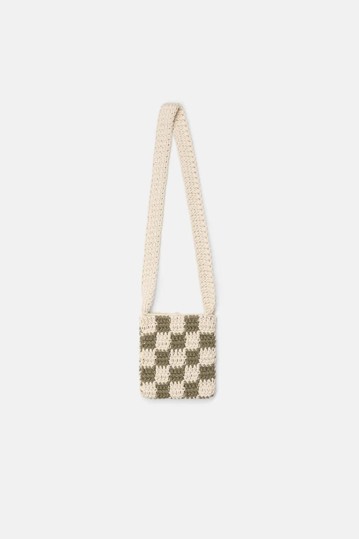 Indulge in the plush comfort of our Crochet Shoulder Bag in Green. Crafted from cotton crochet, this bag features a charming checkerboard pattern and a long cross-body strap for versatile styling. The embroidered Rhythm logo on the front patch adds a signature touch to this artisanal accessory.