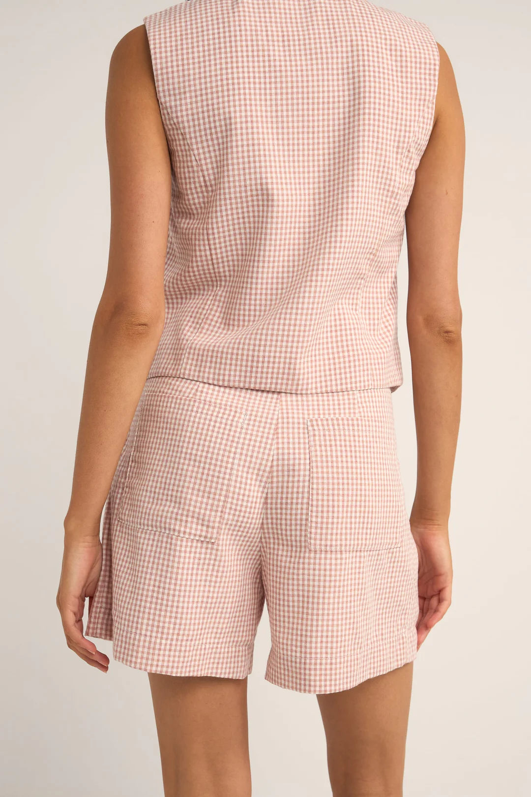 Introducing the Lola Check, a tonal check match made in heaven in a clay colorway. The Lola Check Short is a yarn dye check on seersucker fabric in a tailored A-line silhouette short for year-round style.