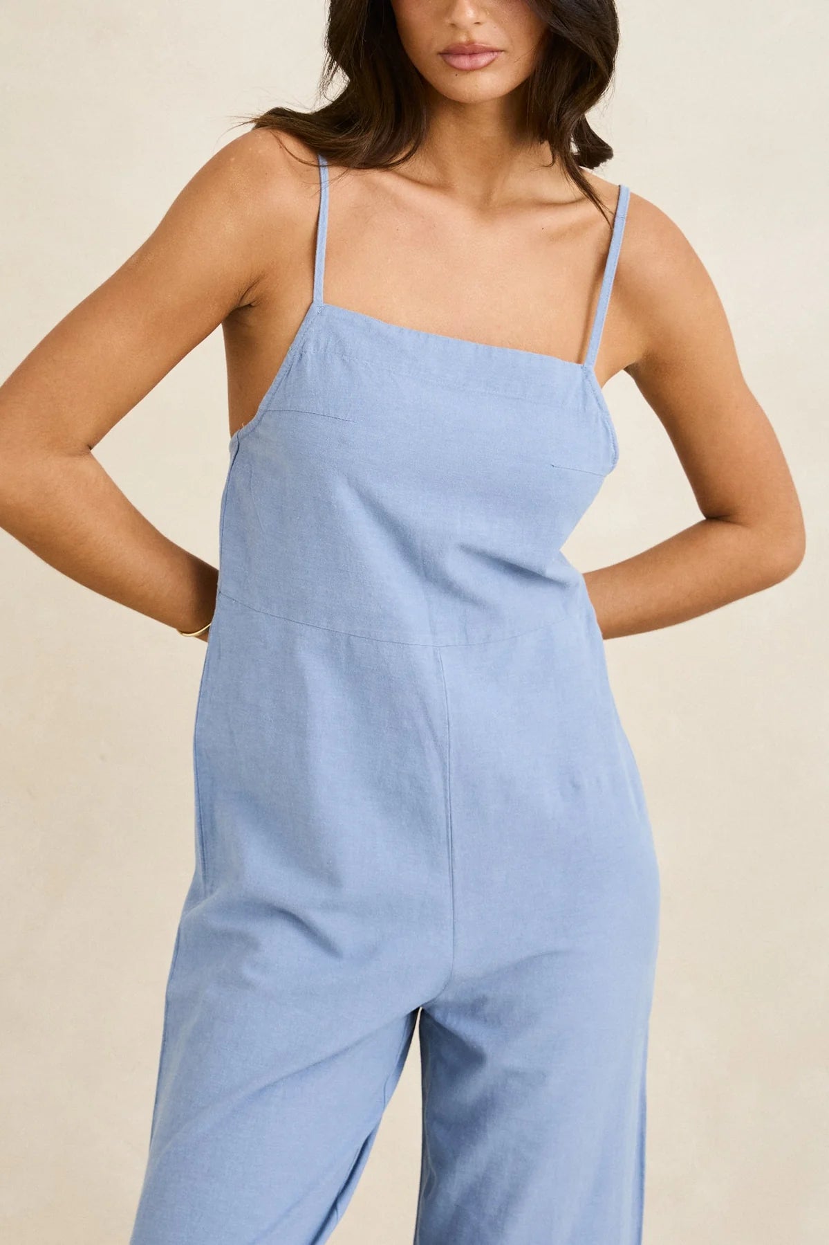 The Classic Jumpsuit in Steel Blue is a perfect blend of style and ease. With its straight apron-style neckline and adjustable straps, this wide-leg jumpsuit offers a flattering fit and chic silhouette. The low back detail adds a hint of allure, while the external Classics flag label at the back waistband completes the look, making it a staple for your wardrobe.