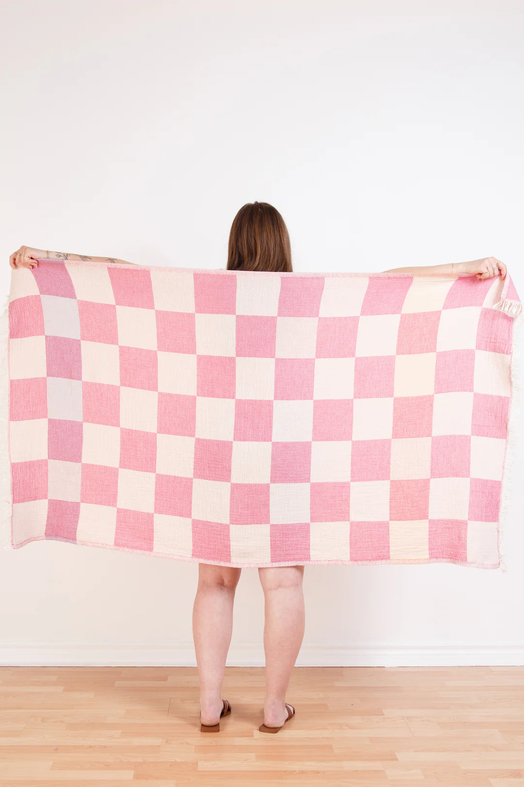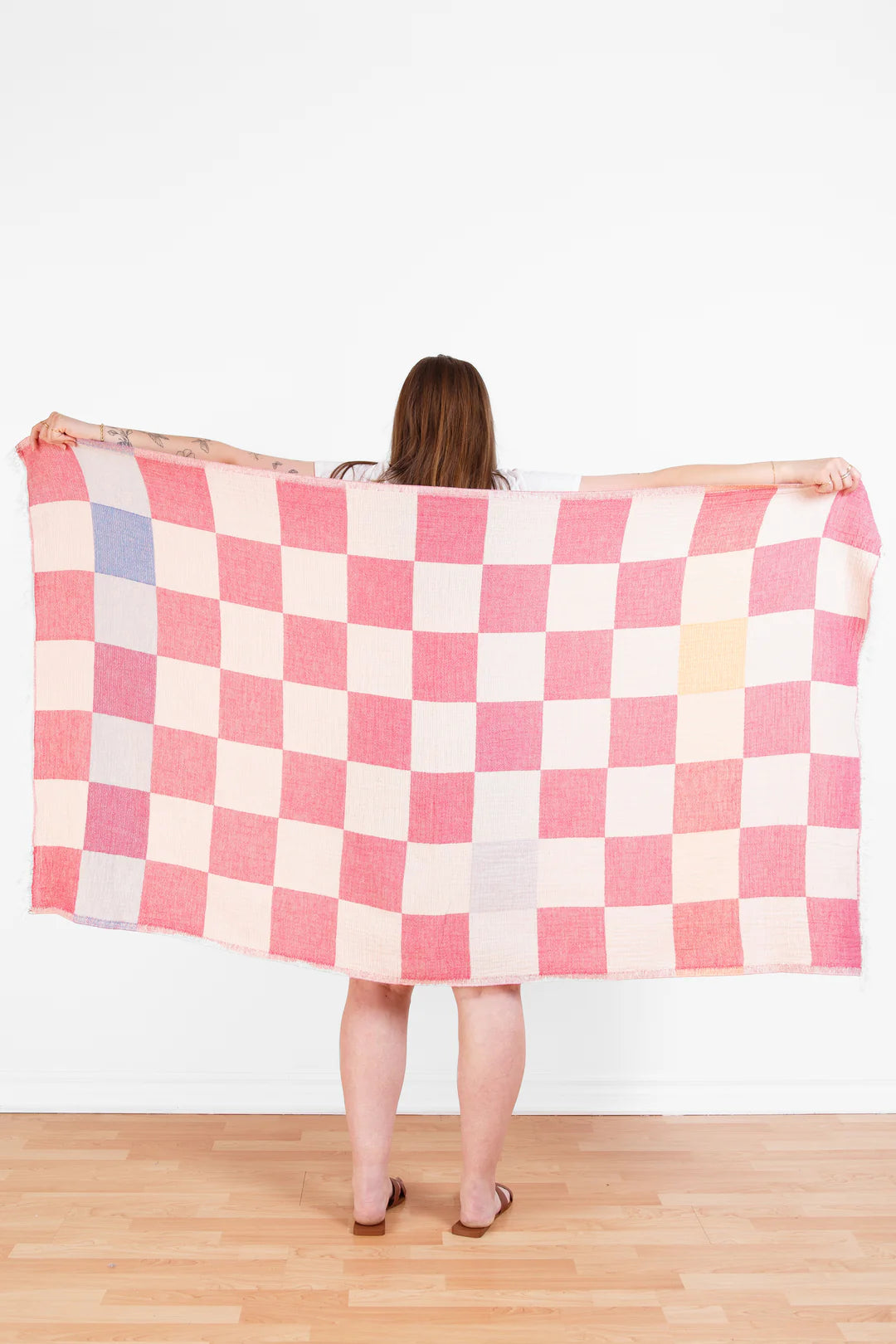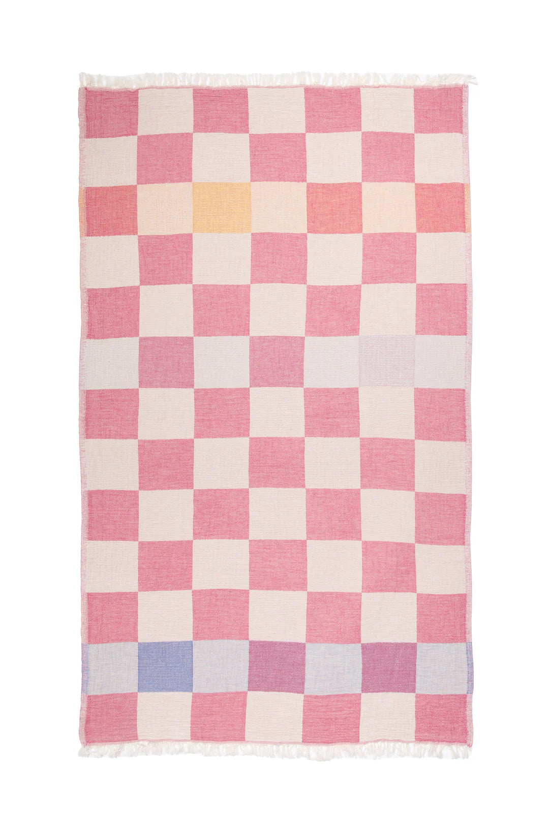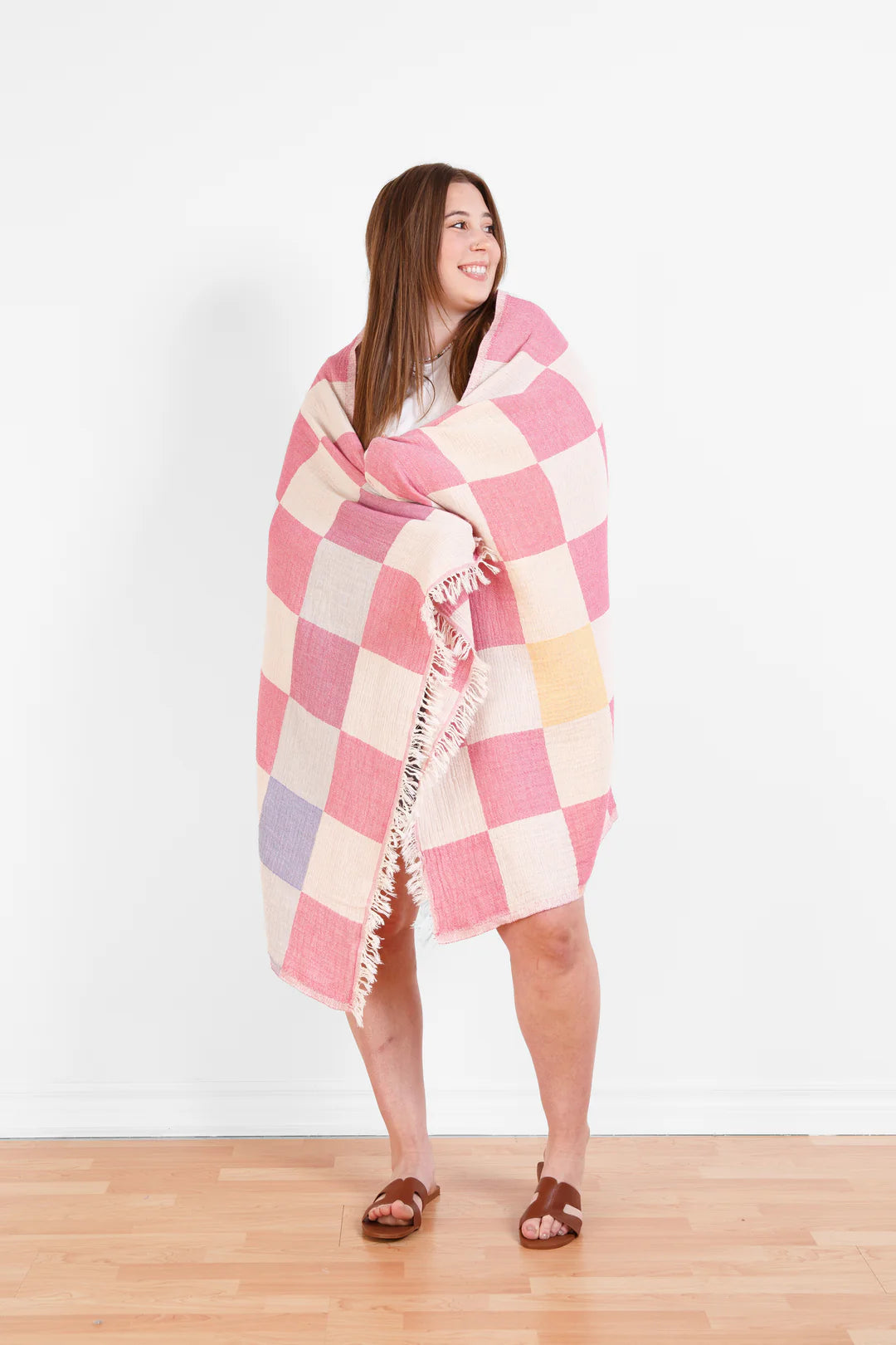 Instantly refresh your summer gear with one of our favourite new designs. This playful checkered towel is sure to bring a little extra joy to your trip to the beach, park or wherever you find yourself. Made from 100% Turkish muslin cotton, this towel isn't only cute, it's super soft, ultra-absorbent, quick drying and earth friendly! Win-win...win-win?!
