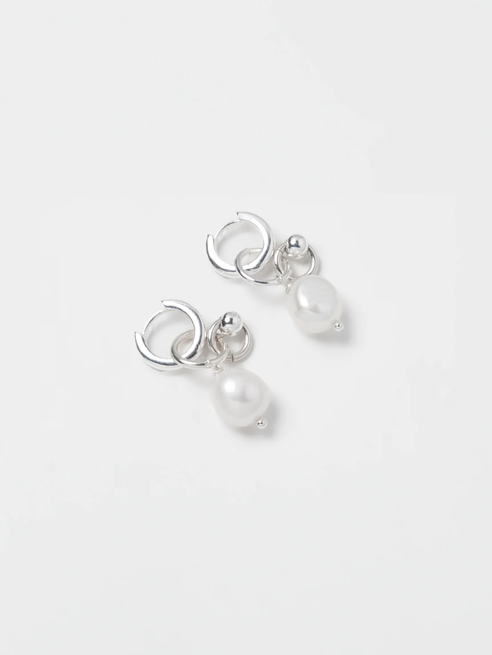 • Recycled 925 Sterling silver huggie hoop earrings with freshwater pearl charms and sterling silver hinges