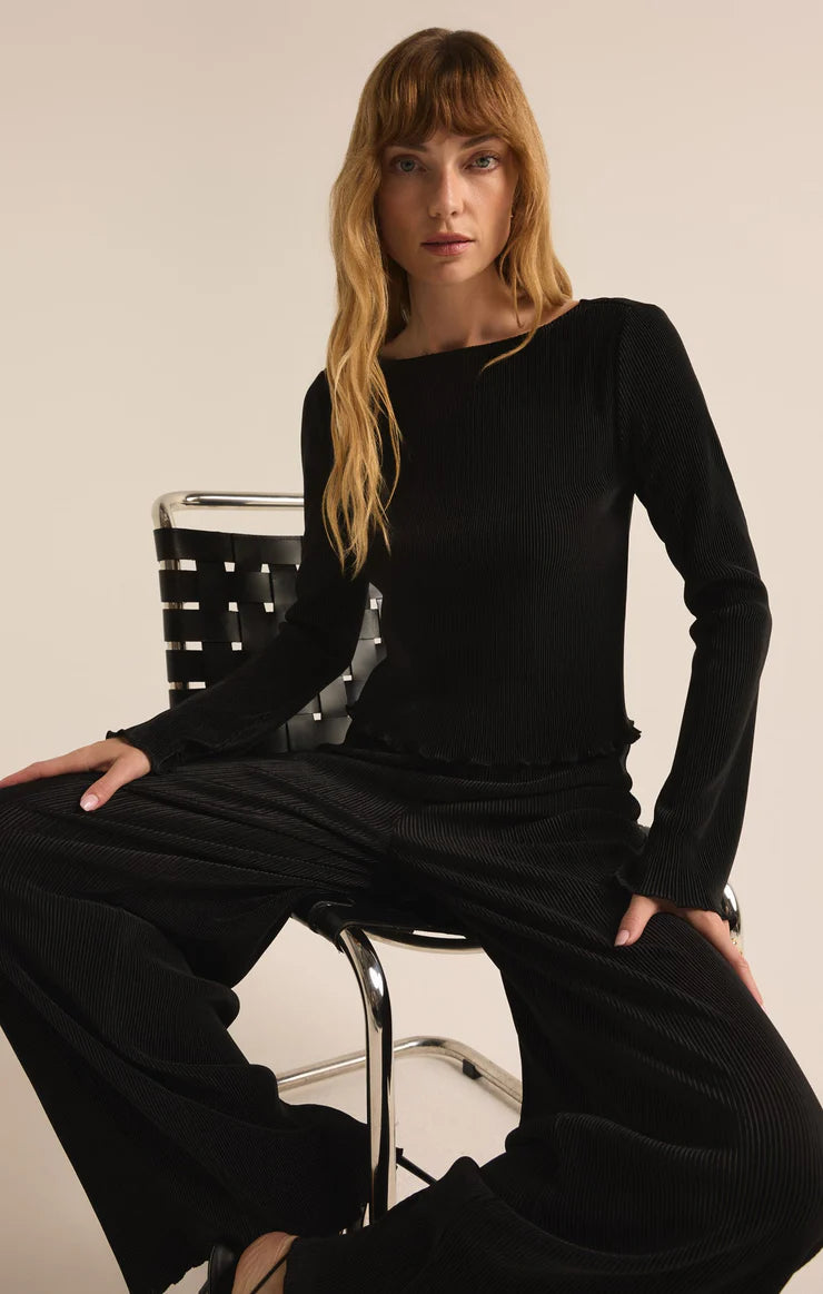 Flowy and effortless, this pleated high-rise pant is made for days when you want to look chic without sacrificing comfort. The elastic waistband and lightweight plissé fabric make it an easy go-to for any occasion.